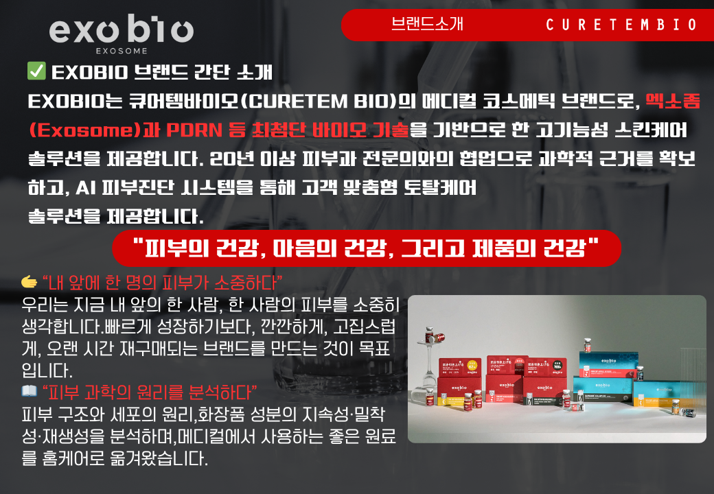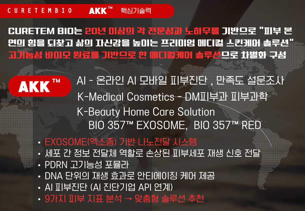 CURETEM BIO는 K-메디컬 코스메틱 전문기업으로서, 피부 본연의 힘을 되찾고 삶의 자신감을 높이는 프리미엄 메디컬 스킨케어 솔루션을 제공합니다.