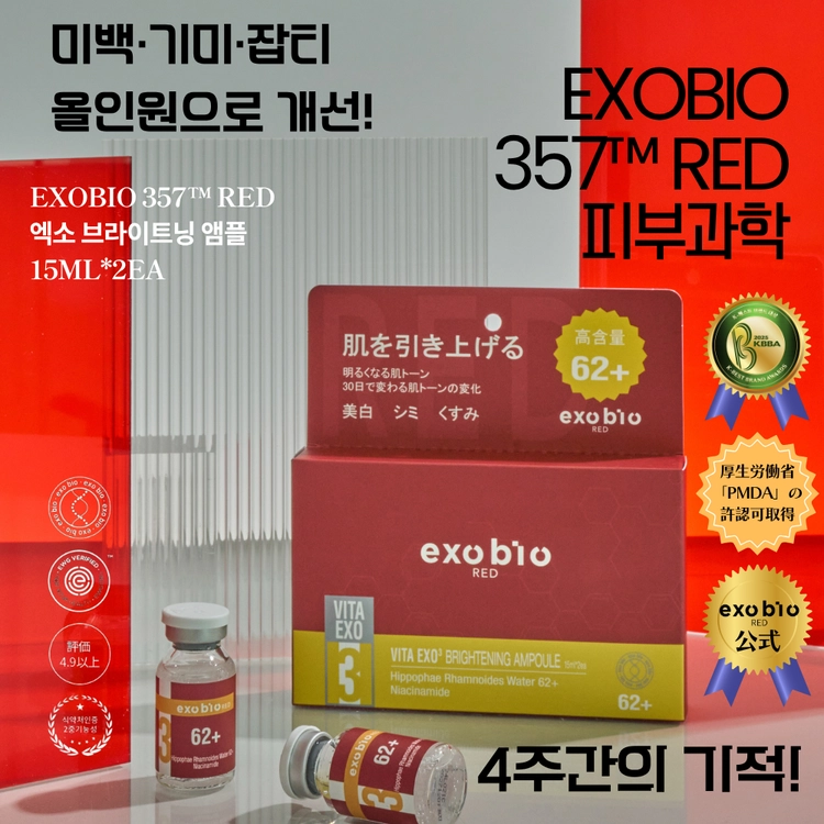 EXOBIO 357™ EXOSOME 피디알엔 엑소 앰플 안티에이징 5ml*5ea+EXOBIO 357™ RED 비타 엑소 브라이트닝 앰플 15ML*2EA
